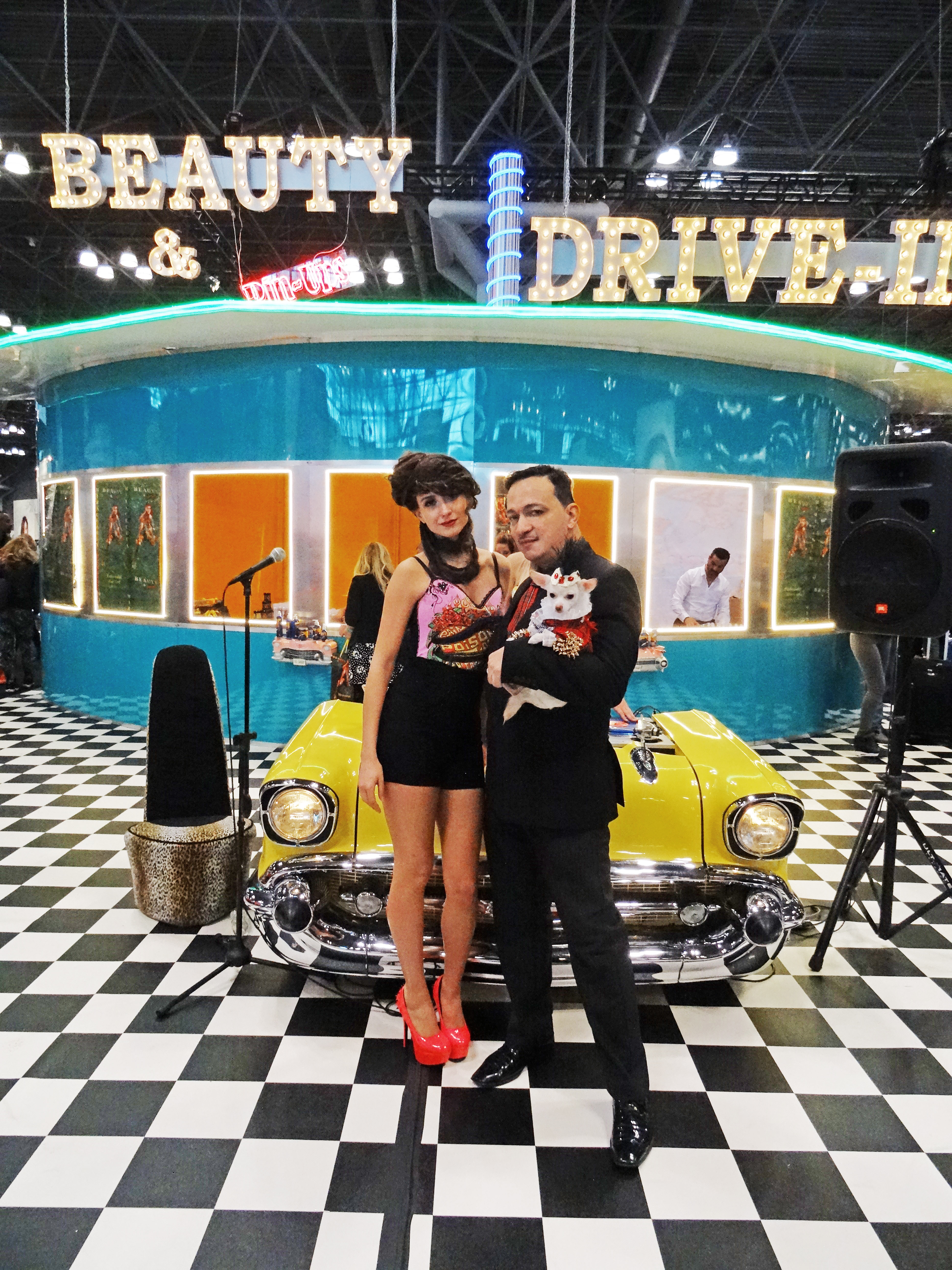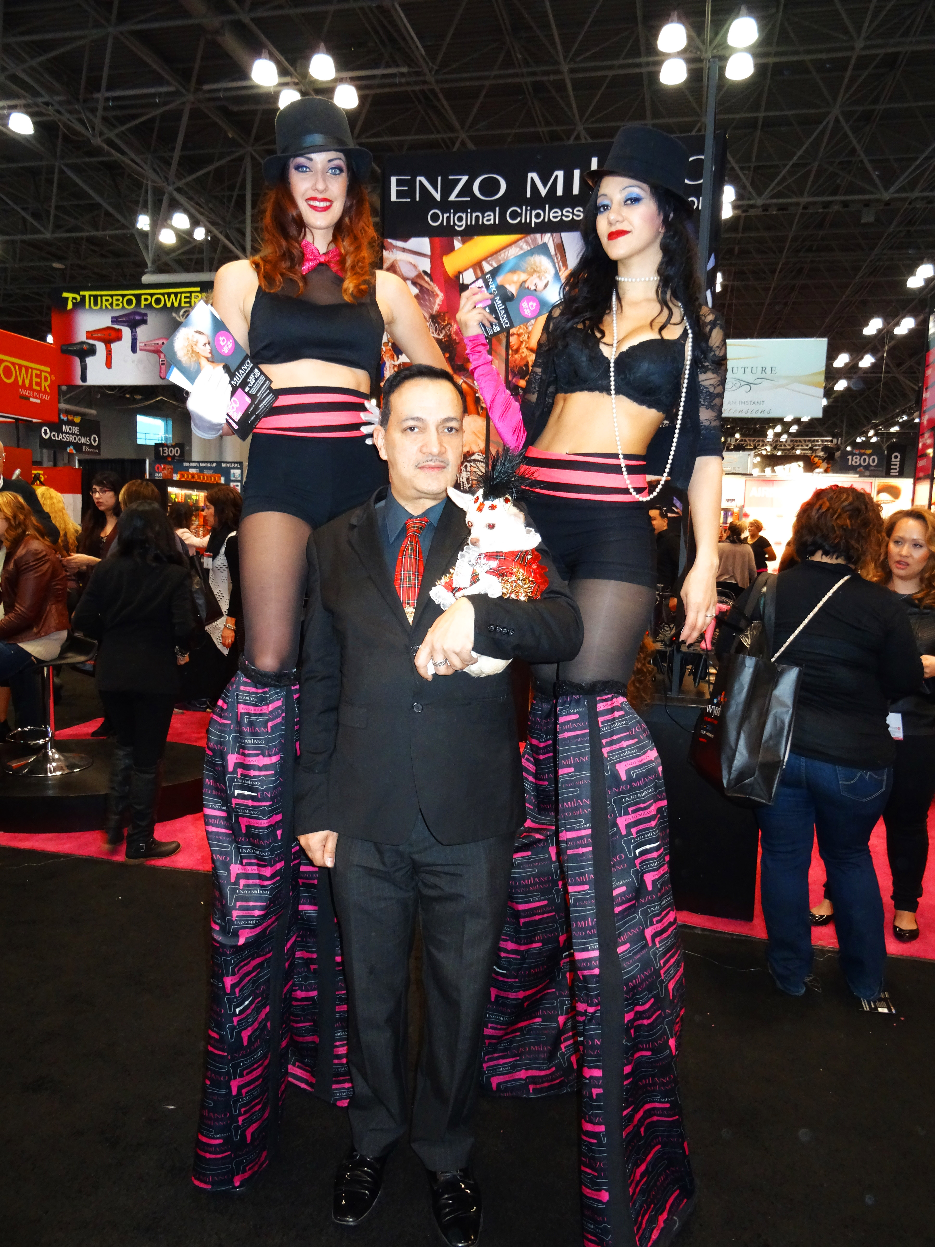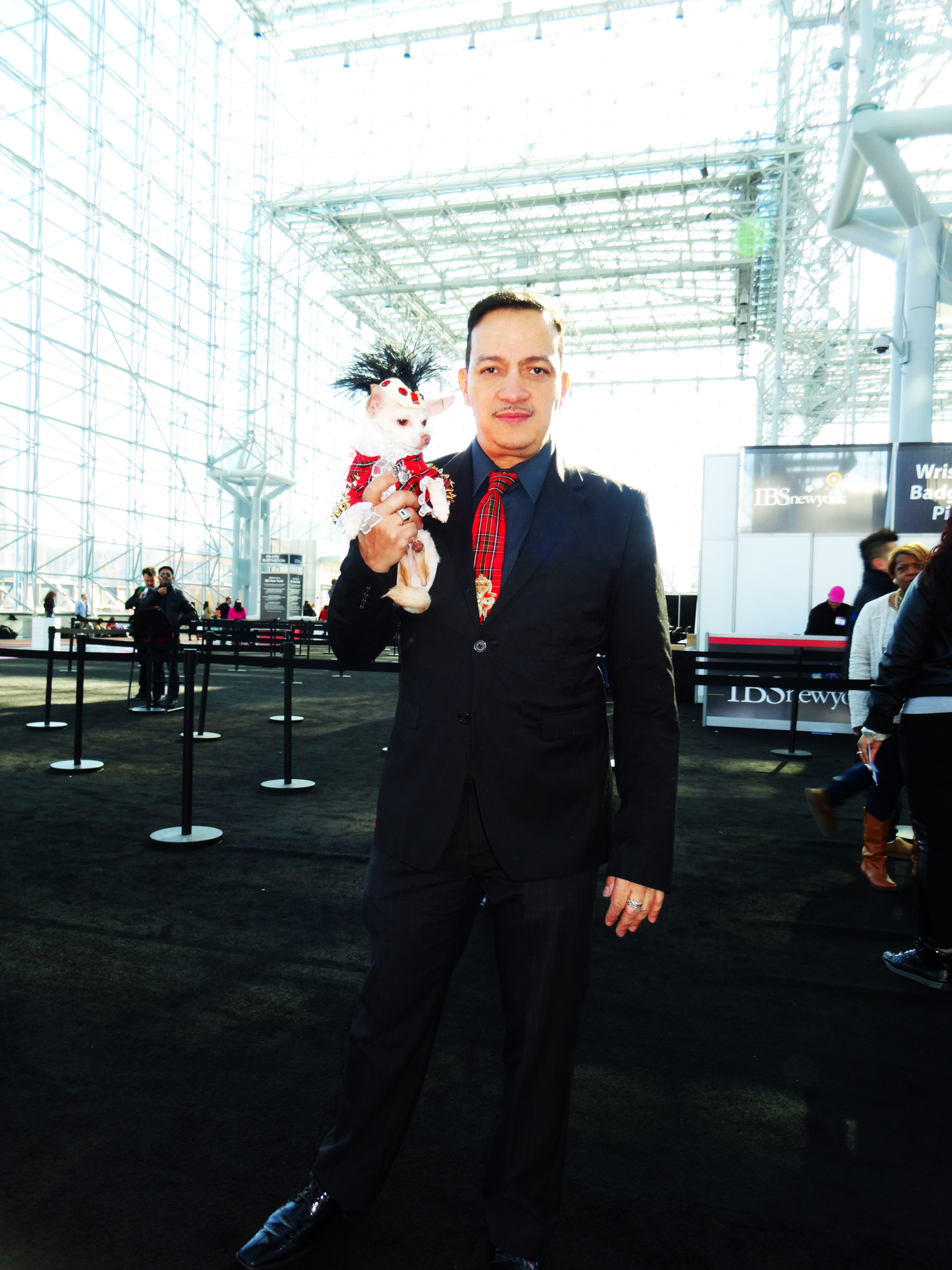 Anthony Rubio with with Chihuahua Kimba attend the International Beauty Show at the Javits Center in New York City.