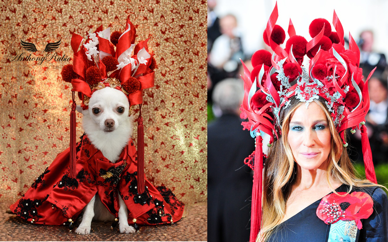 Inspired by the magnificent exhibit taking place at New York’s Metropolitan Museum titled China Through The looking Glass, Dog Fashion Designer Anthony Rubio felt compelled to draw from the impact of Chinese aesthetics on Western fashion. Ever since it’s earliest contact with the Orient Europe has had a fascination with everything Asia. The influences have appeared in everything from interior decor to fashion and even in the form of Opera and theater. Costume design is an art form in itself and Anthony Rubio has drawn from that influence to create a select few pieces for his collection.