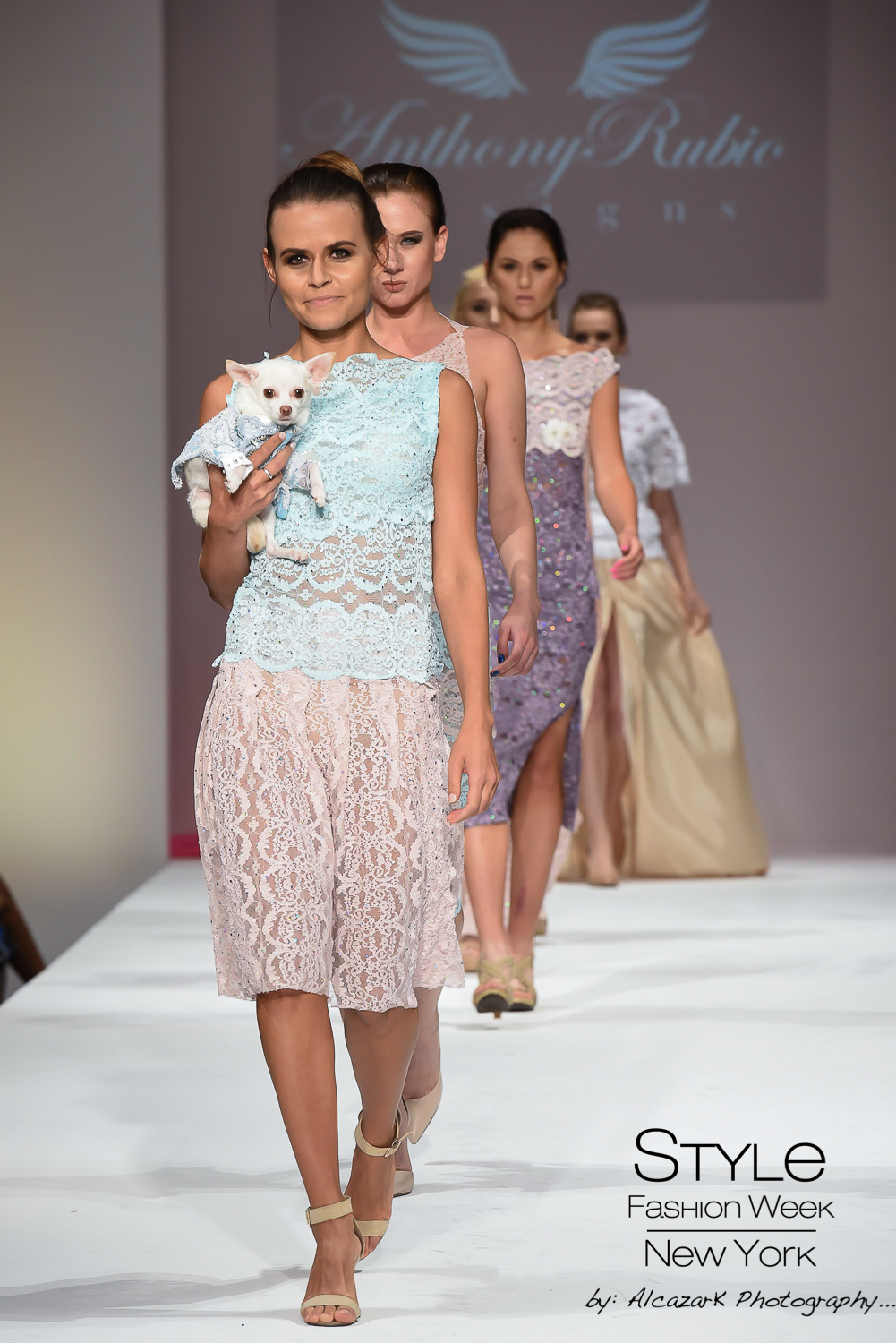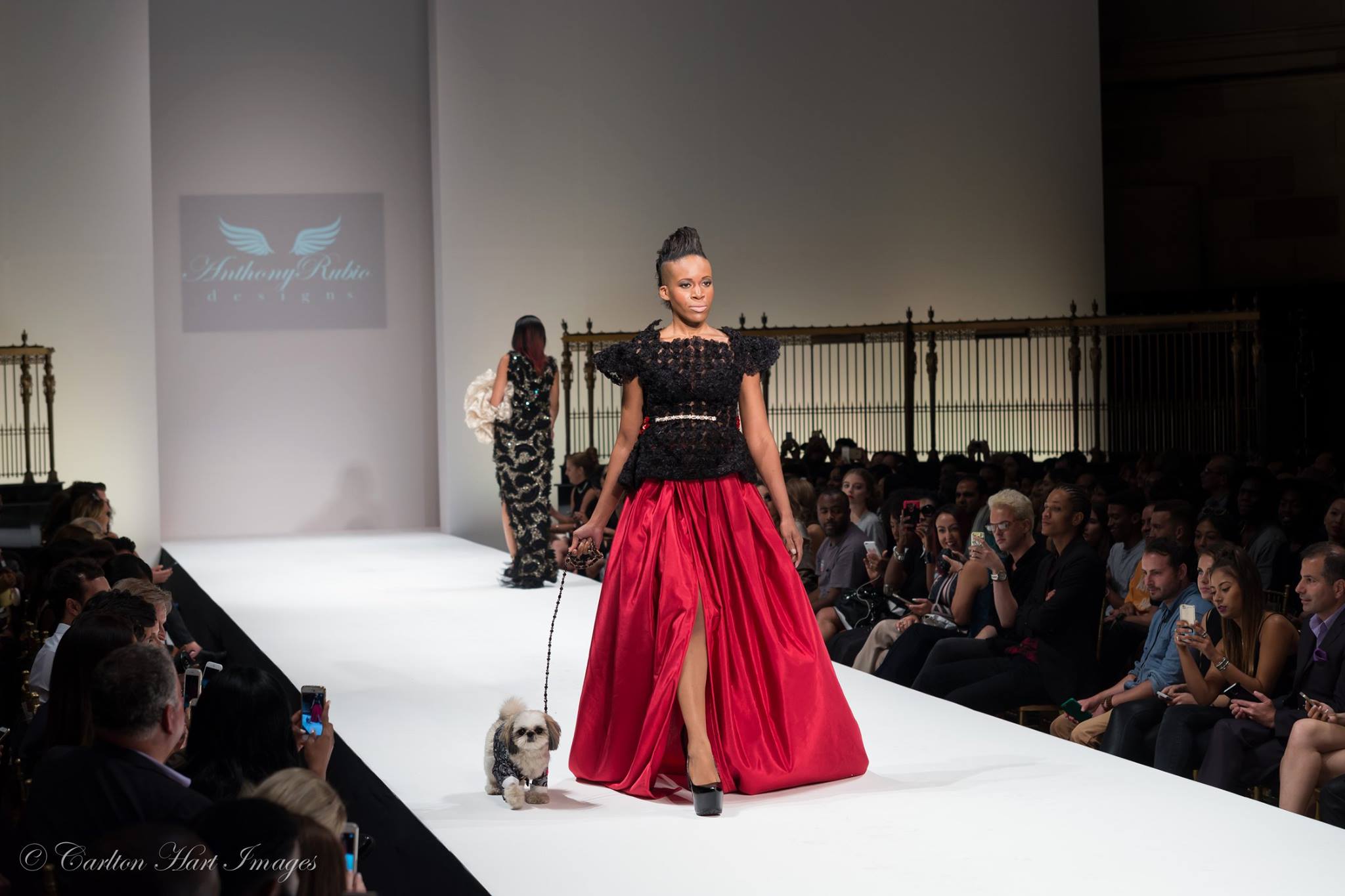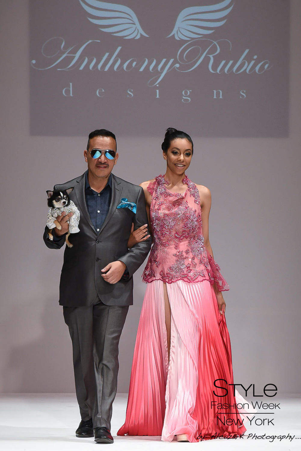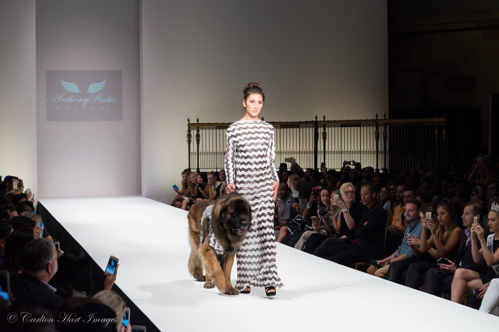 Pet Couturier Anthony Rubio, no stranger to the runways had a plan in place to break stigma and barriers presenting his canine couture as escorted by human models wearing his women’s wear fashions at the fabulous location Gotham Hall by Style Fashion Week during this season’s New York Fashion Week. Never done before, the models, canine and human, took to the catwalk and blew the attendees away.