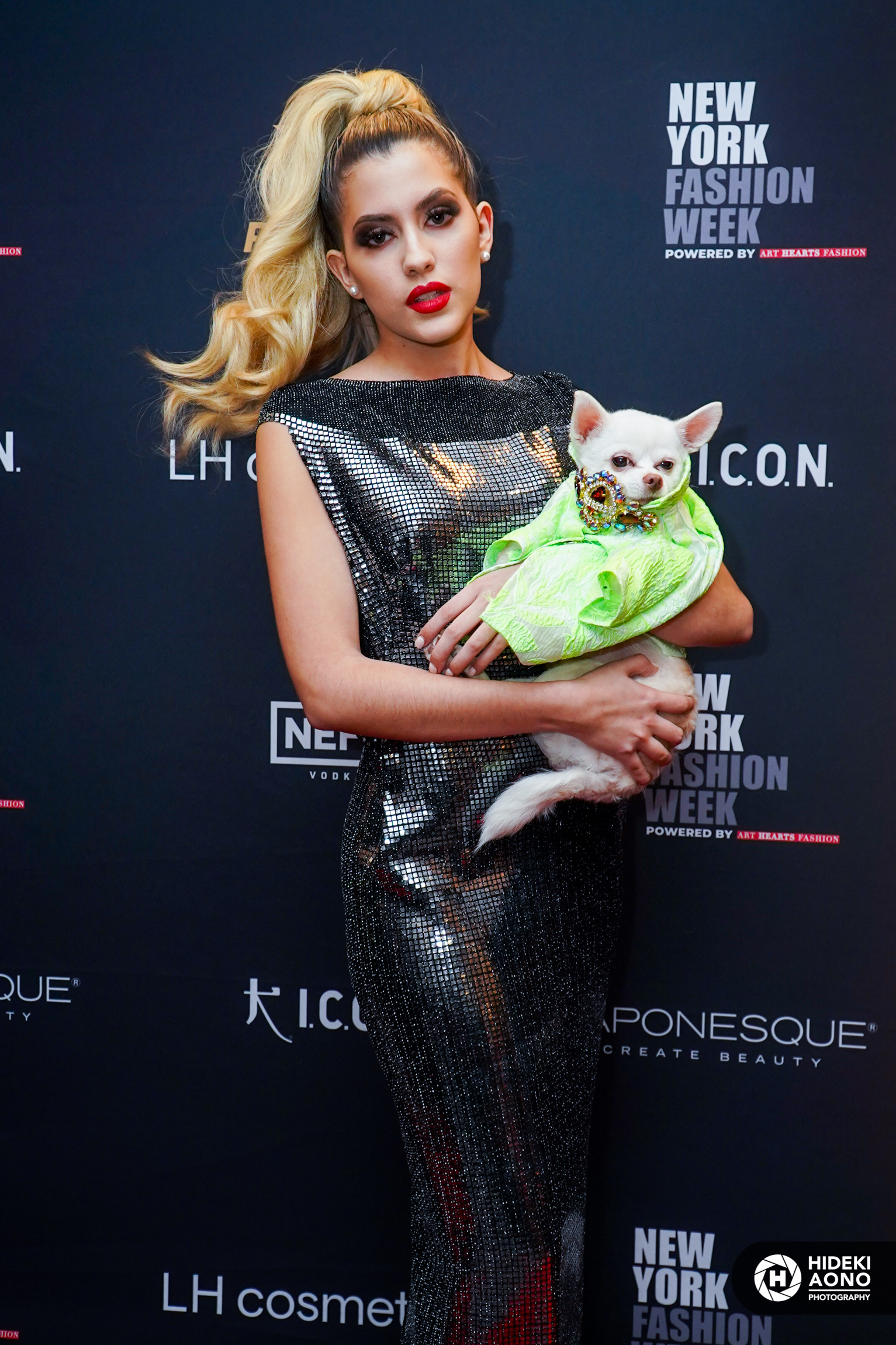The featured mode for this show was a tiny Chihuahua brought in all the way from Ohio named Misty Lynn. This little lady is both a fighter and inspiration to teach everyone a lesson about resilience. Due to a case of neglect of an injury which almost resulted in her being euthanized by her previous owner a risk was taken in amputating a front leg that might have spread an infection that would have killed her. After a miraculous recovery she was adopted by her present family who adore and spoil this ater day princess. Misty Lynn loves attention and fashion and she has given us the pleasure of gracing our runway as her New York Fashion Week debut. Who would have thought this adorable little lady would rock the greatest runway in fashion? Anthony Rubio did.