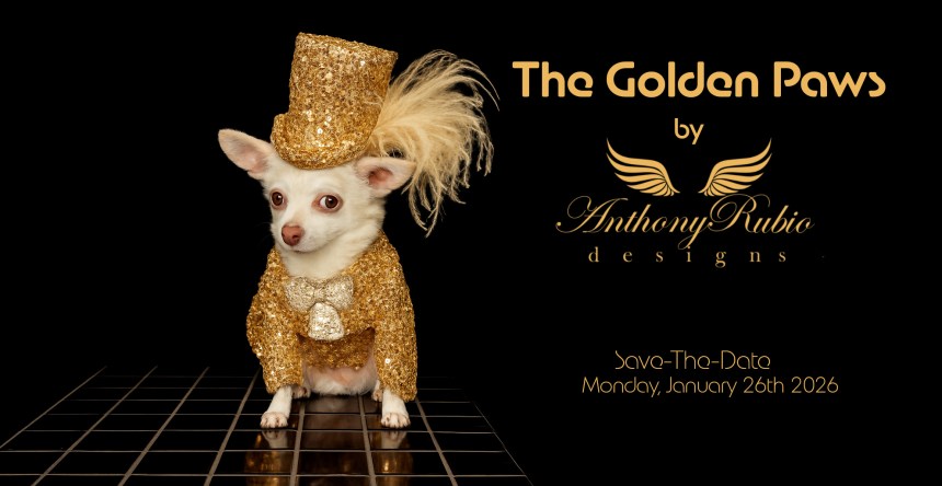 Mark your calendars for The Golden Paws by Anthony Rubio. It’s set to be Pet Fashion’s most glamorous night of the year. On Monday, January 26th, 2026, just two weeks after the Golden Globes, Pet Couturier Anthony Rubio will unveil his recreated celebrity looks for dogs inspired by Hollywood’s most celebrated red carpet moments from the 2026 Golden Globes.