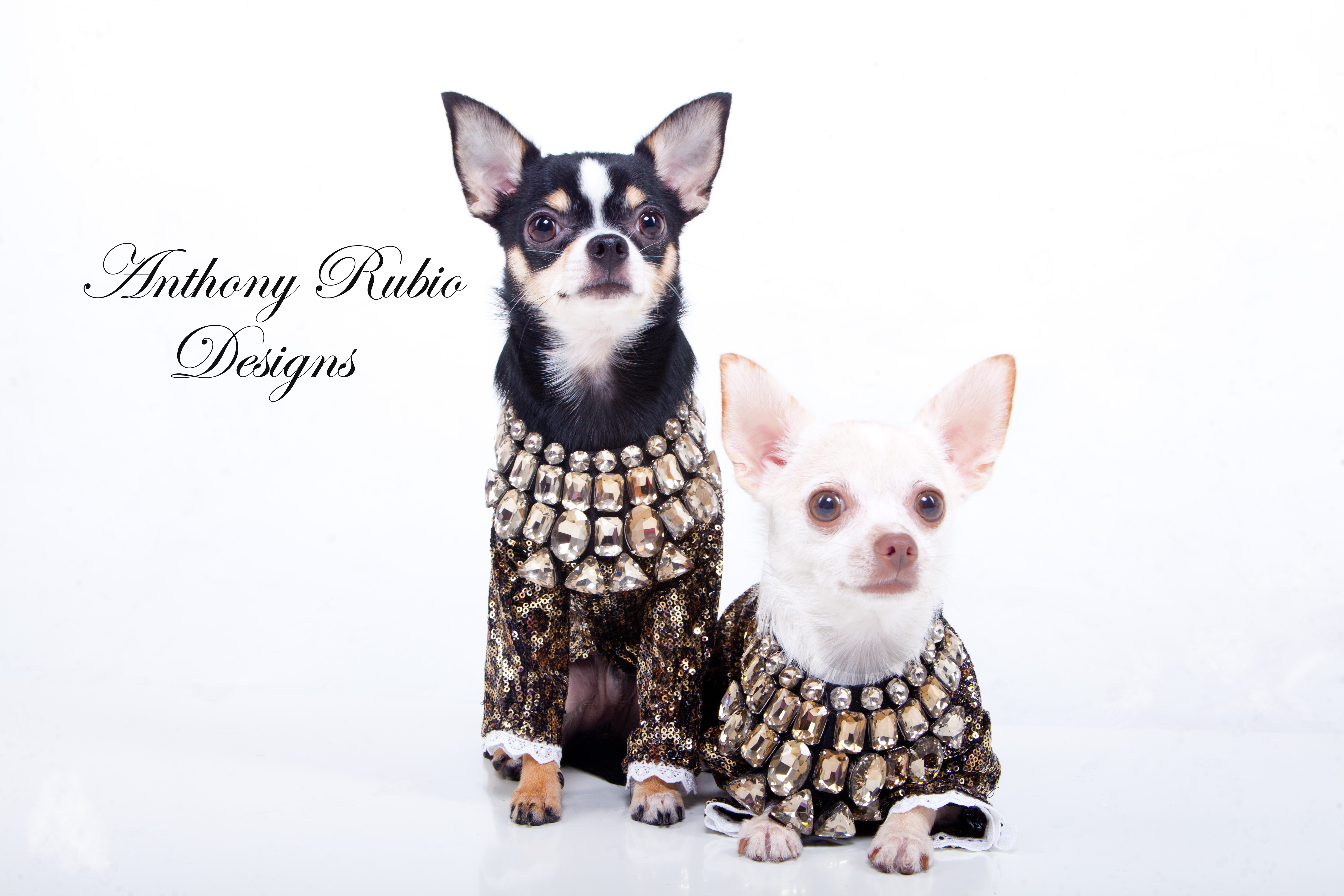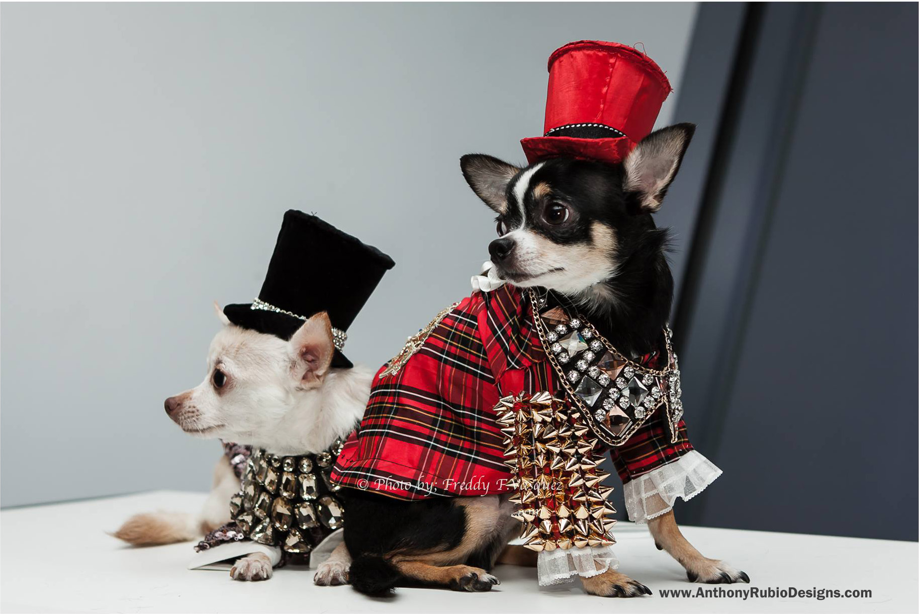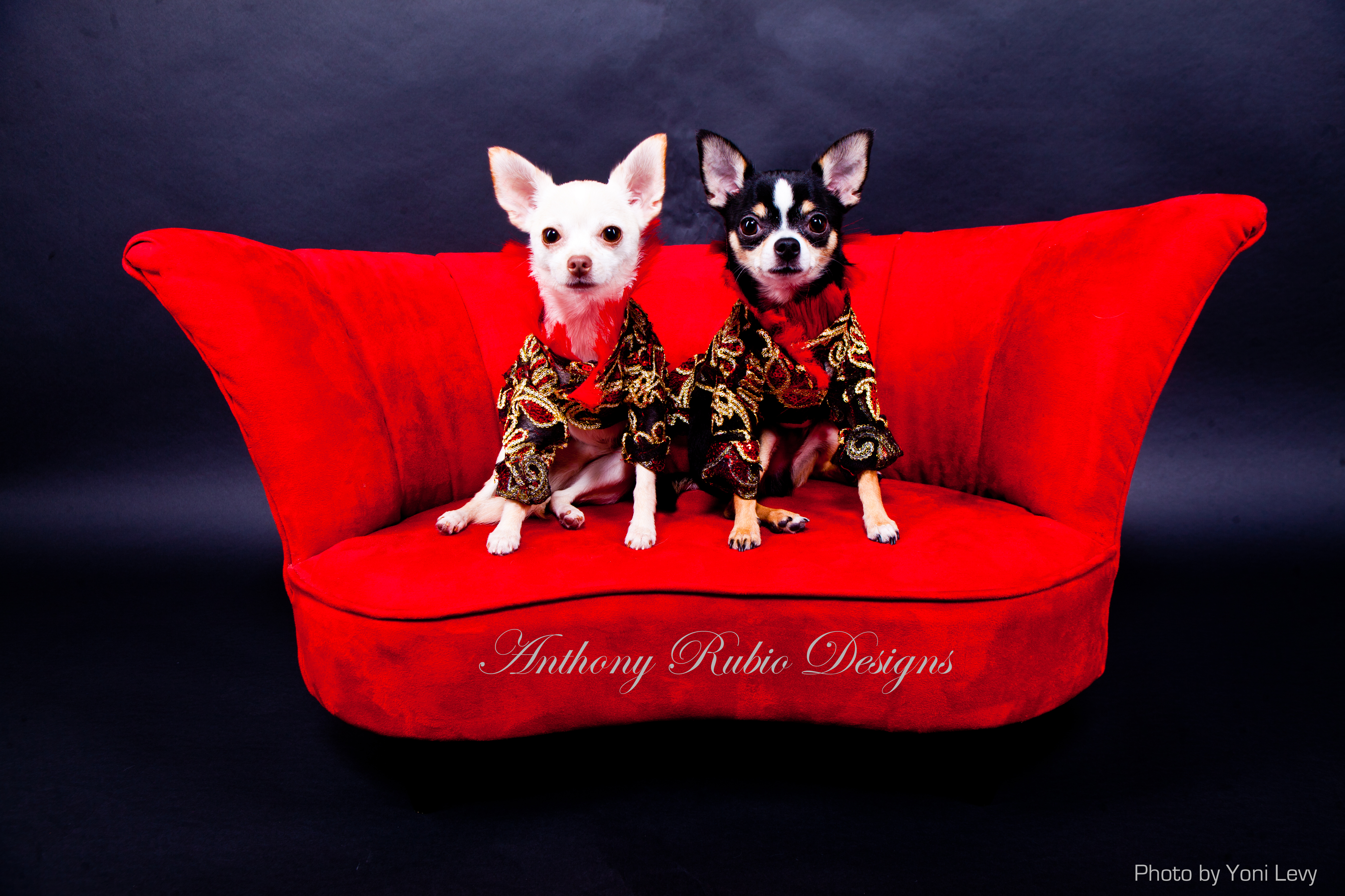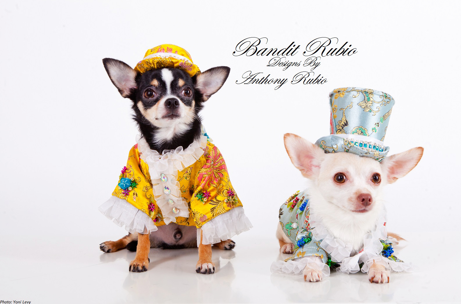 Anthony Rubio, Bogie and Kimba, Dog Fashion, Chihuahua,Canine Couture,