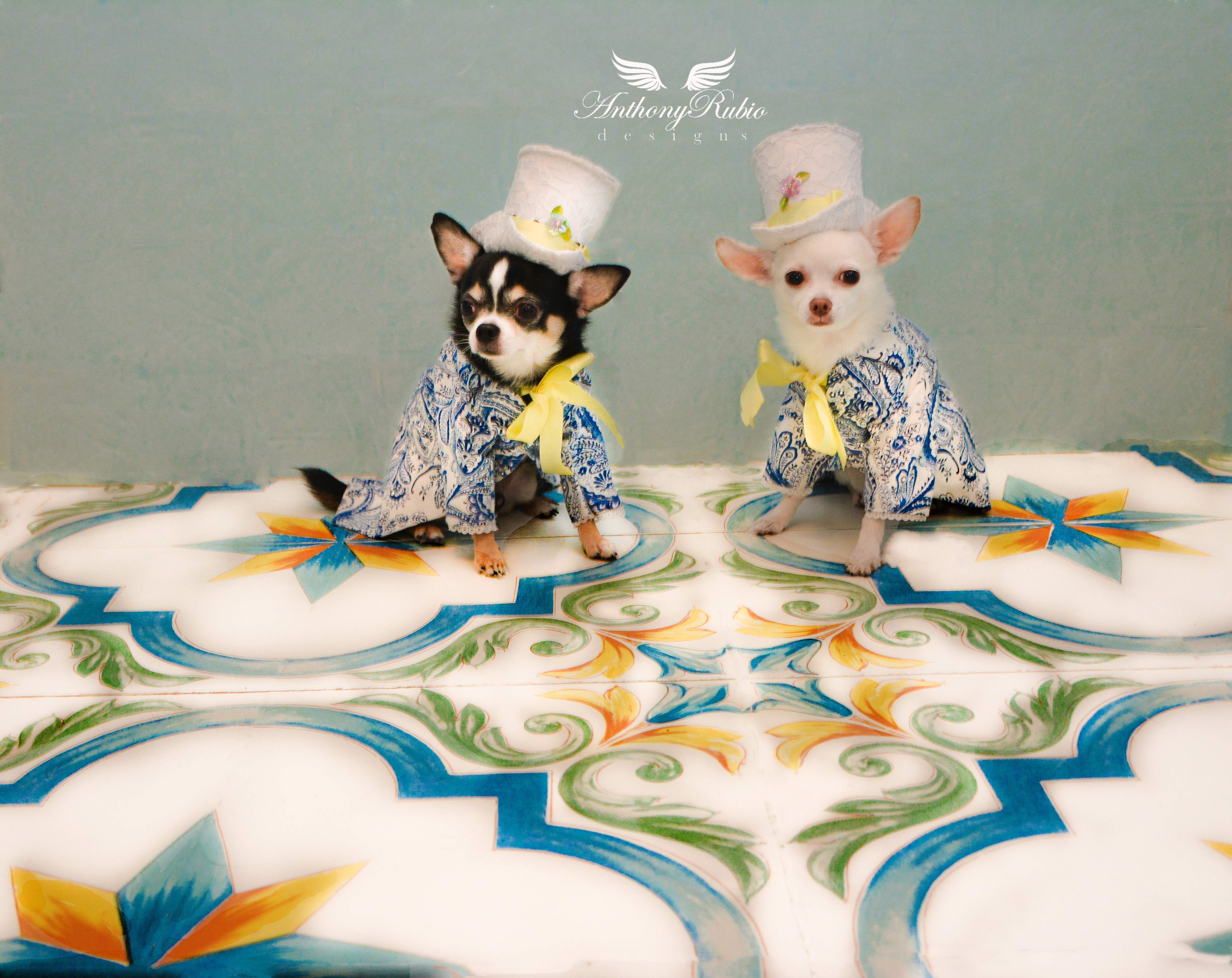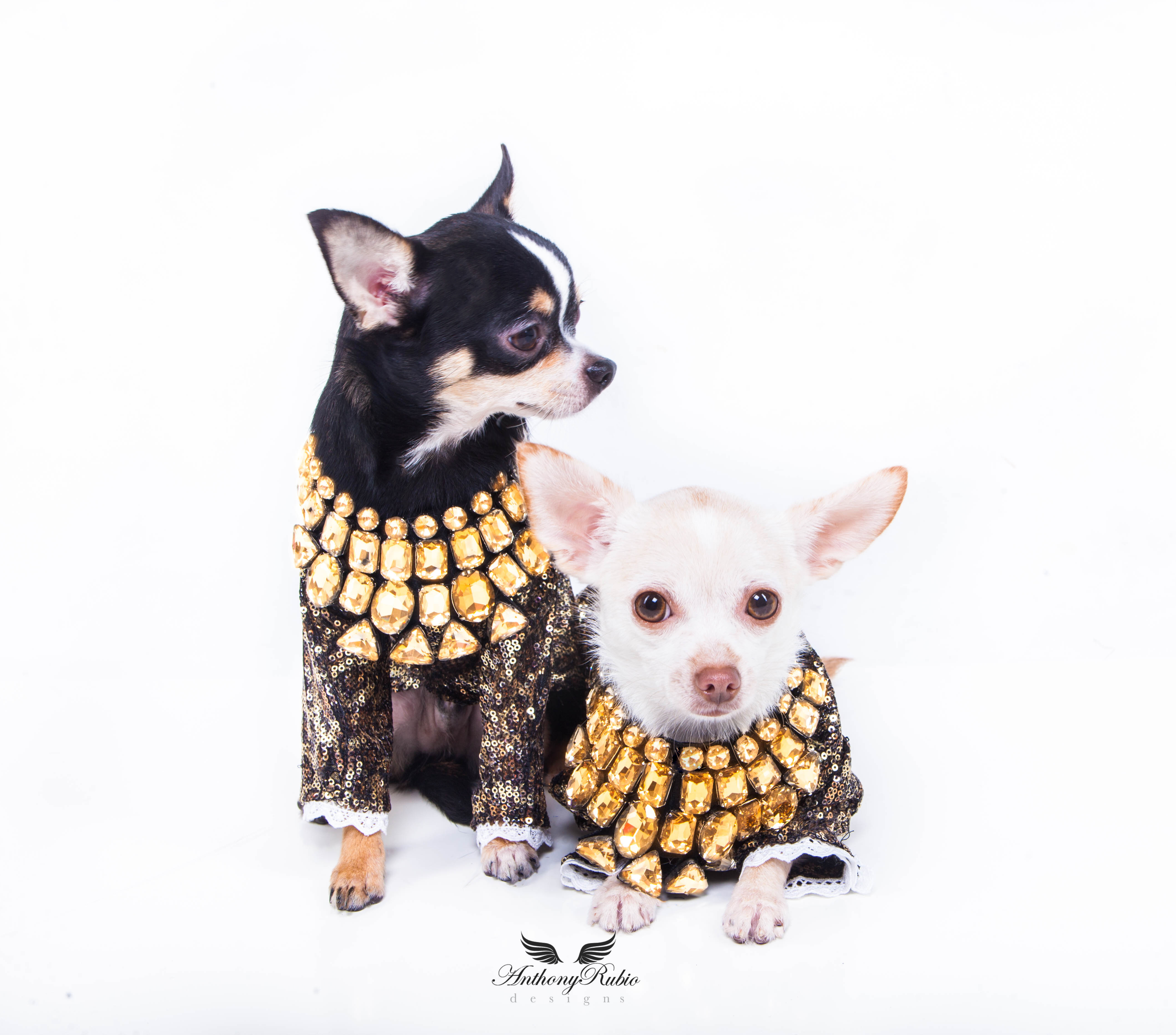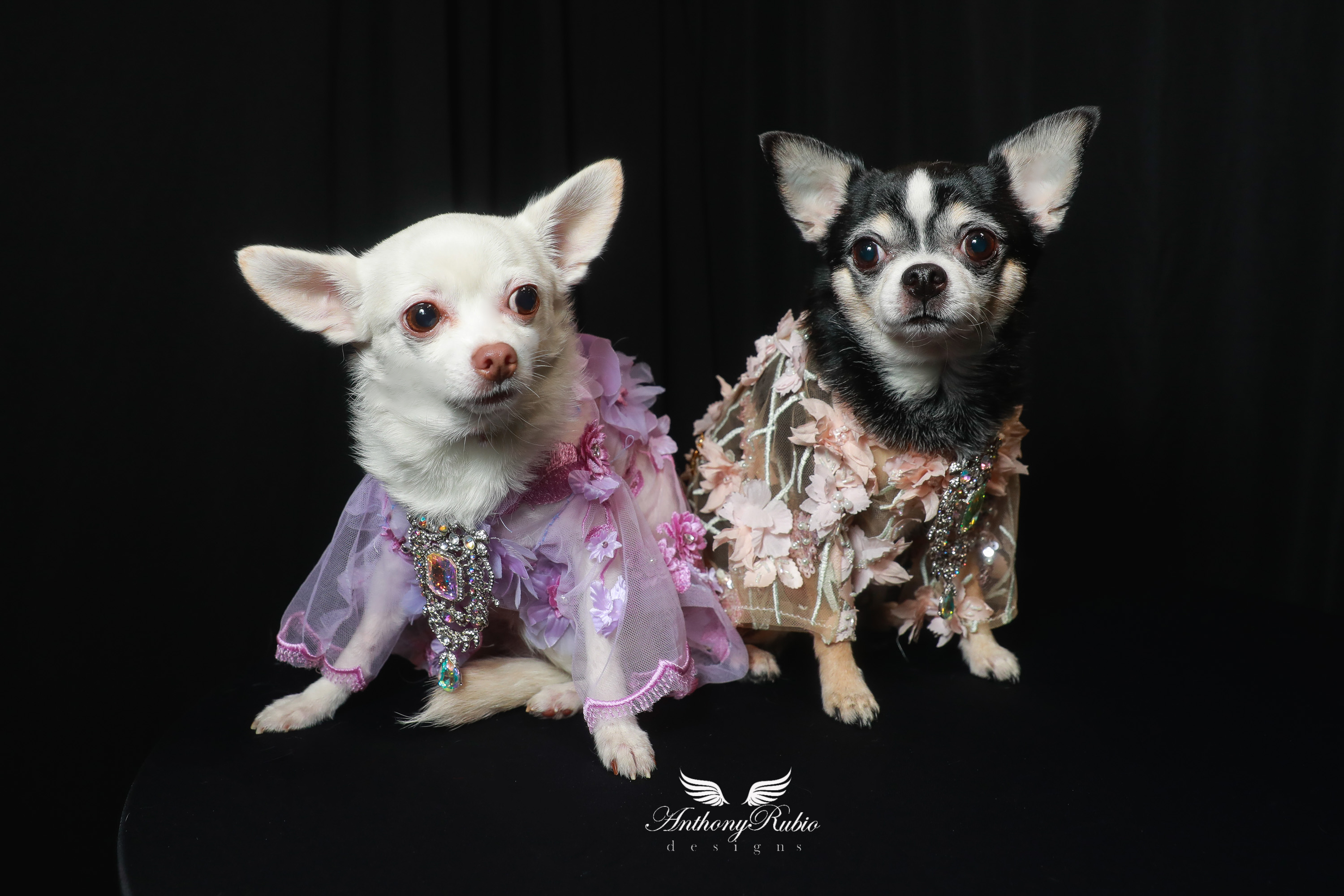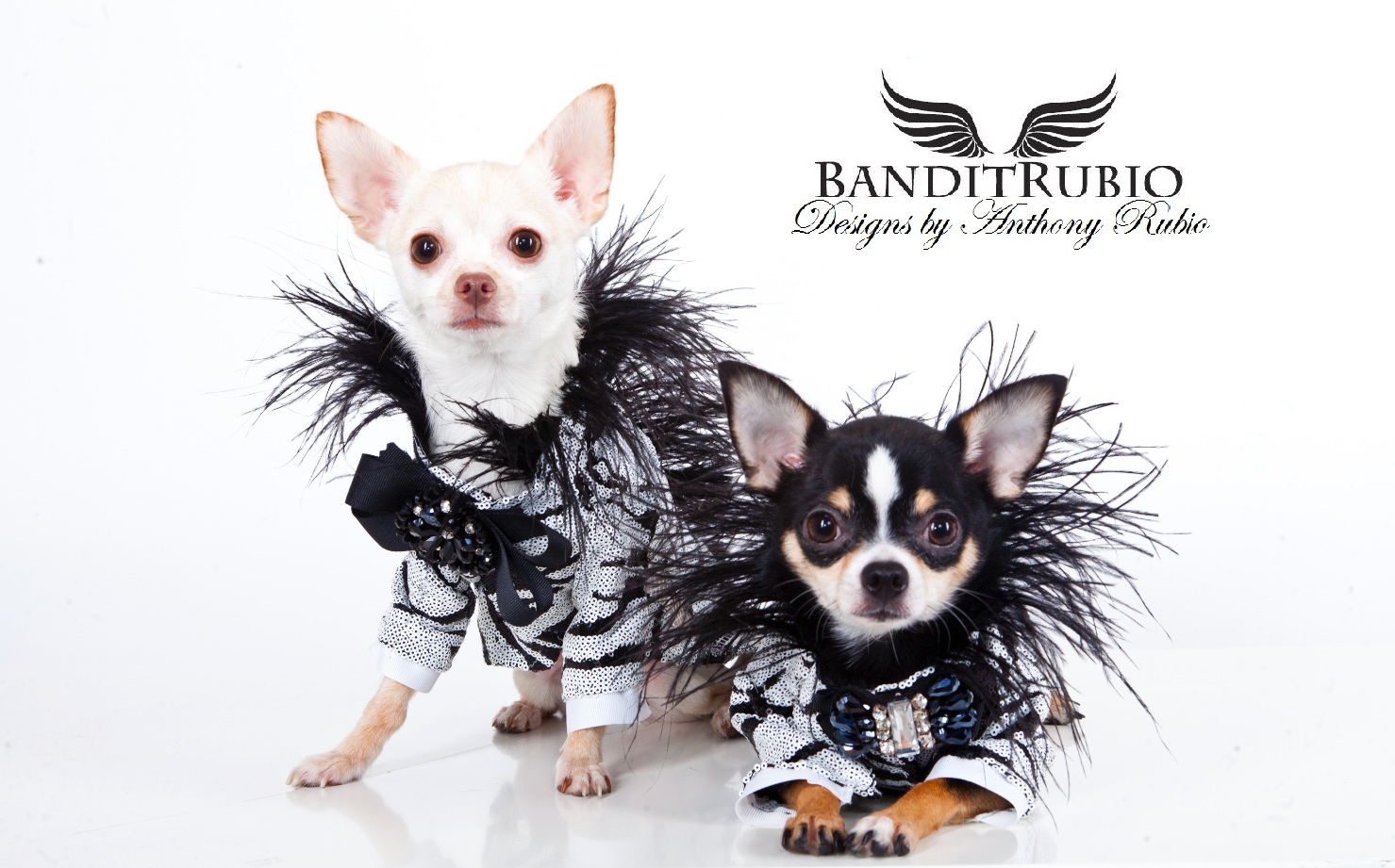Anthony Rubio, Bogie and Kimba, Dog Fashion, Chihuahua,Canine Couture,