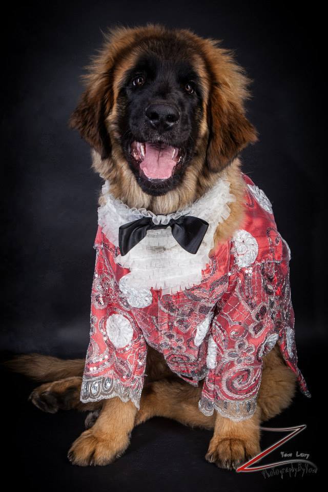 Tapestry coat a special custom design by Anthony Rubio for Bandit Rubio Designs as modeled by Max-a-Million the 2012 NJ Barking Beauty belonging to Ashley Eve.