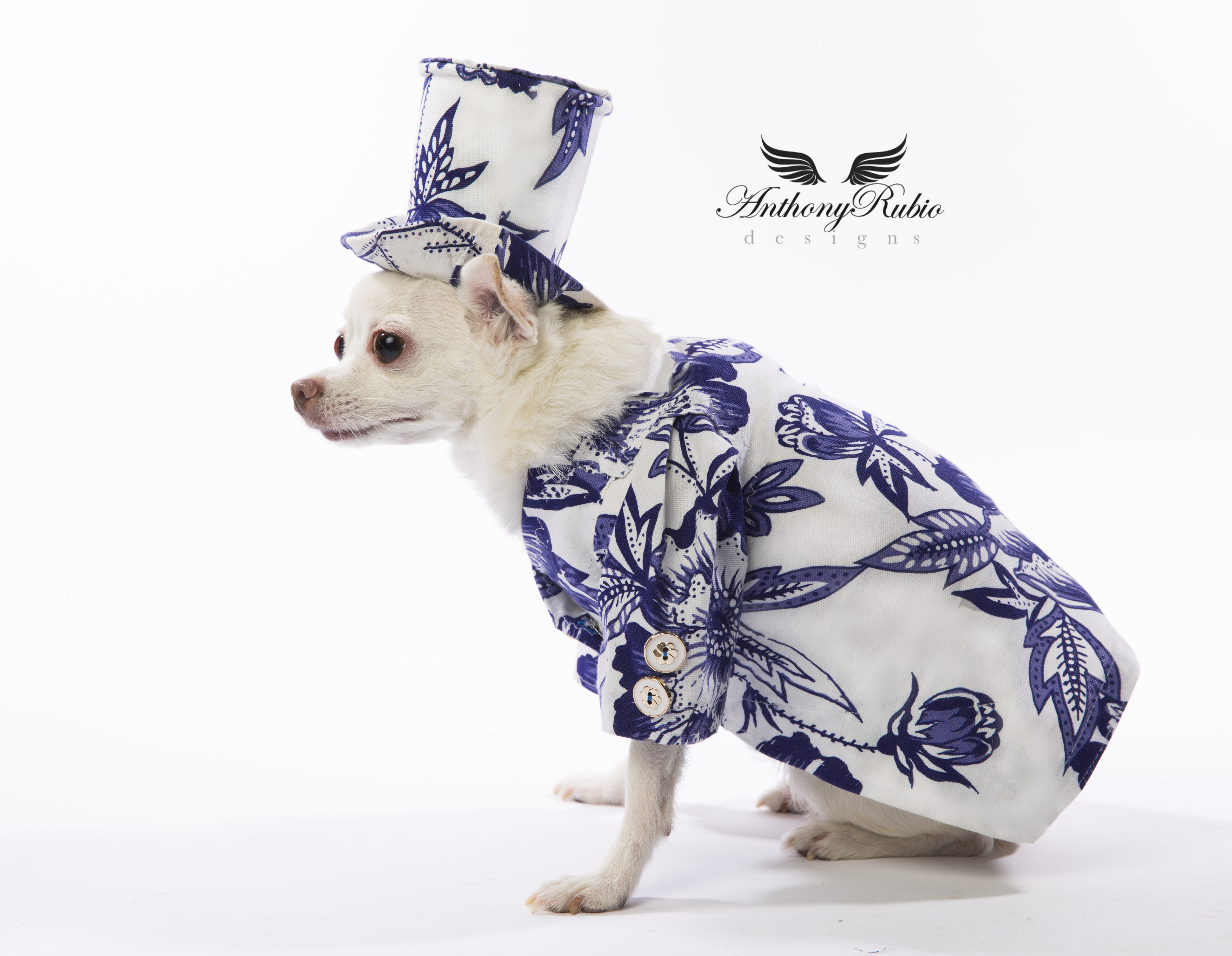 Blue Majolica tuxedos and Top Hats for dogs by Anthony Rubio